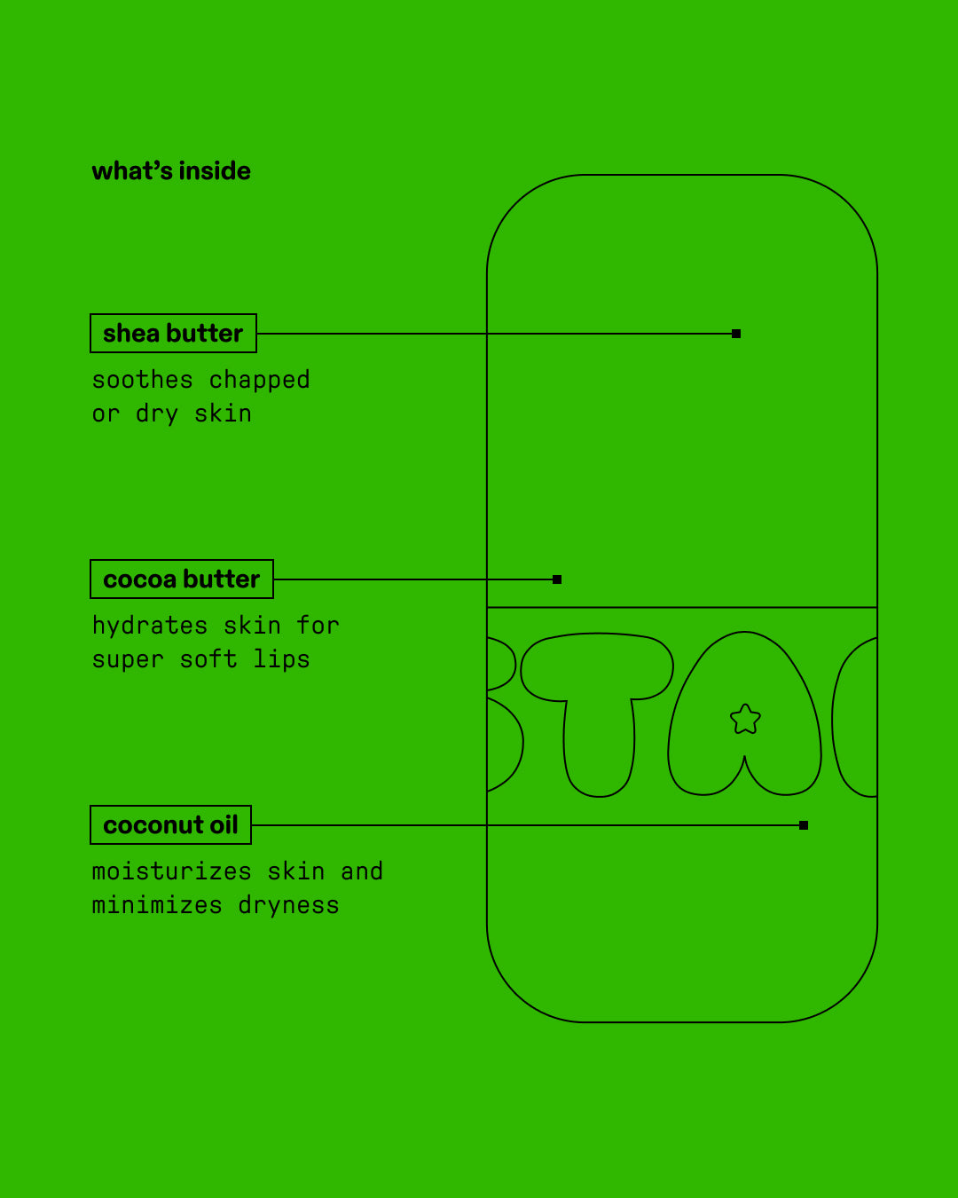 star balm helps soothe chapped lips and minimize dryness. thanks to shea butter, cocoa butter, and coconut oil, star balm delivers long-lasting hydration for soft and happy lips. it also comes in a variety of tasty flavors to add a lil fun to your day!