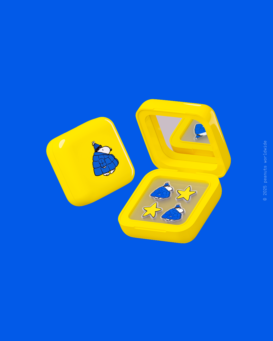 new peanuts x starface is here! inside this cute refillable compact you’ll find 32 hydrocolloid pimple patches featuring snoopy bundled up in a blue puffer and yellow star doodles.